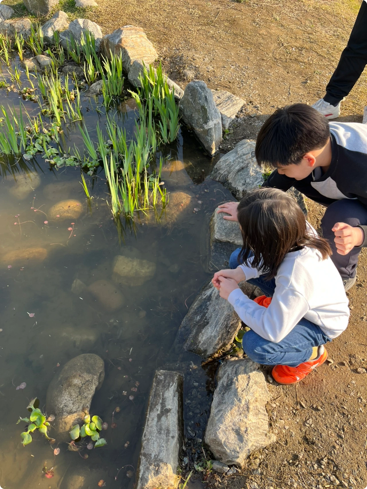 아이들과 텃밭 옆에 있는 작은 연못에서 올챙이들 구경을 좀 하다가 집으로 돌아왔다.
