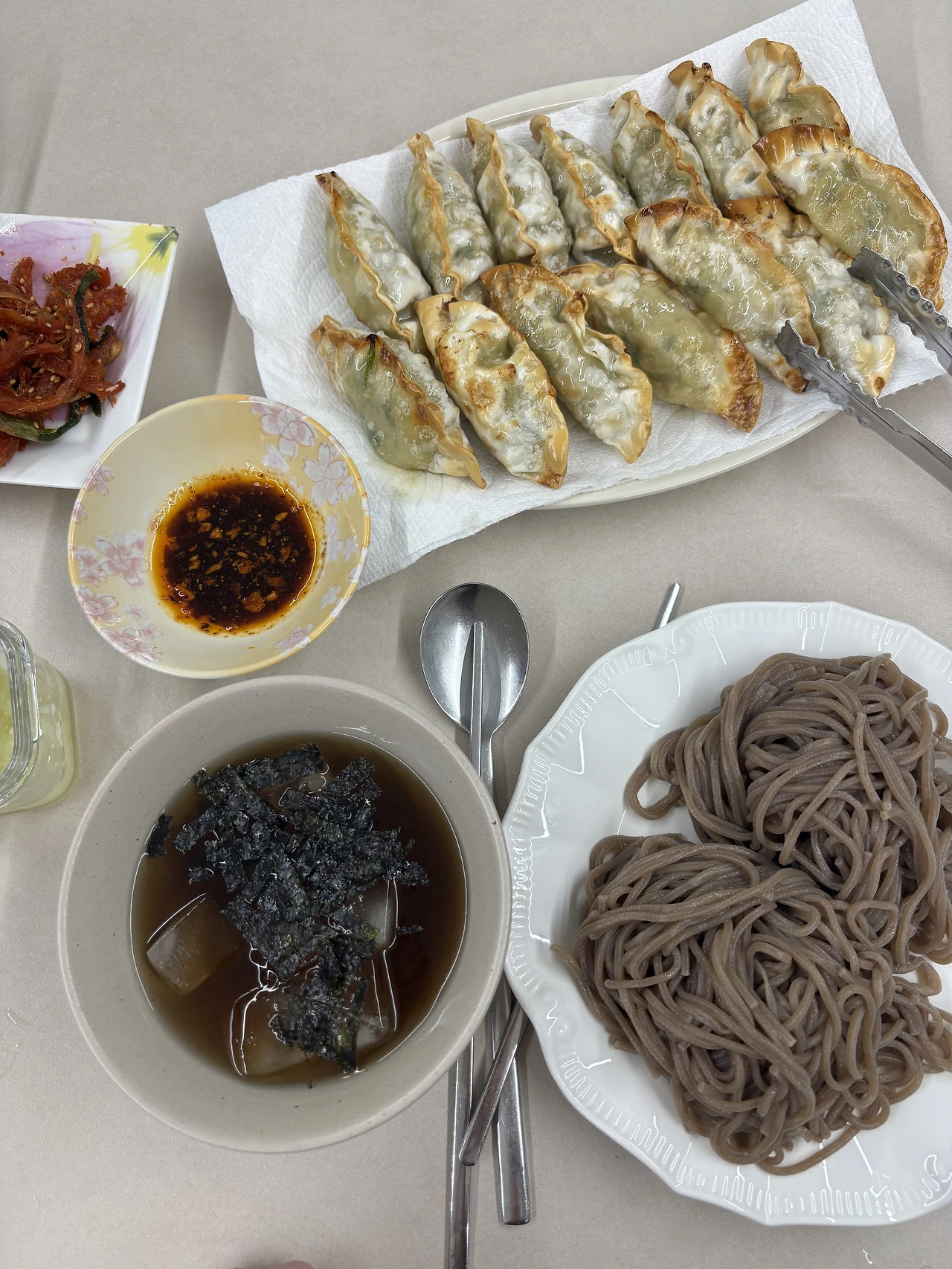 보통 여름에 소바를 많이 팔기 때문에 밖에서 먹기 어려운 계절에는 집에서 해먹어보겠다고 메밀면을 샀다. 왜인지 손이 가지 않아 한동안 못 본 척 하다가 오늘 꺼내들었다. 마침 주말에 홈플러스에서 소바육수를 저렴하게 파는 걸 사왔겠다. 무국을 끓이기 전에 일부를 갈아놨겠다. 저녁 빨리 먹고 각자 일정이 있겠다. 정말 오늘이 딱이었다.