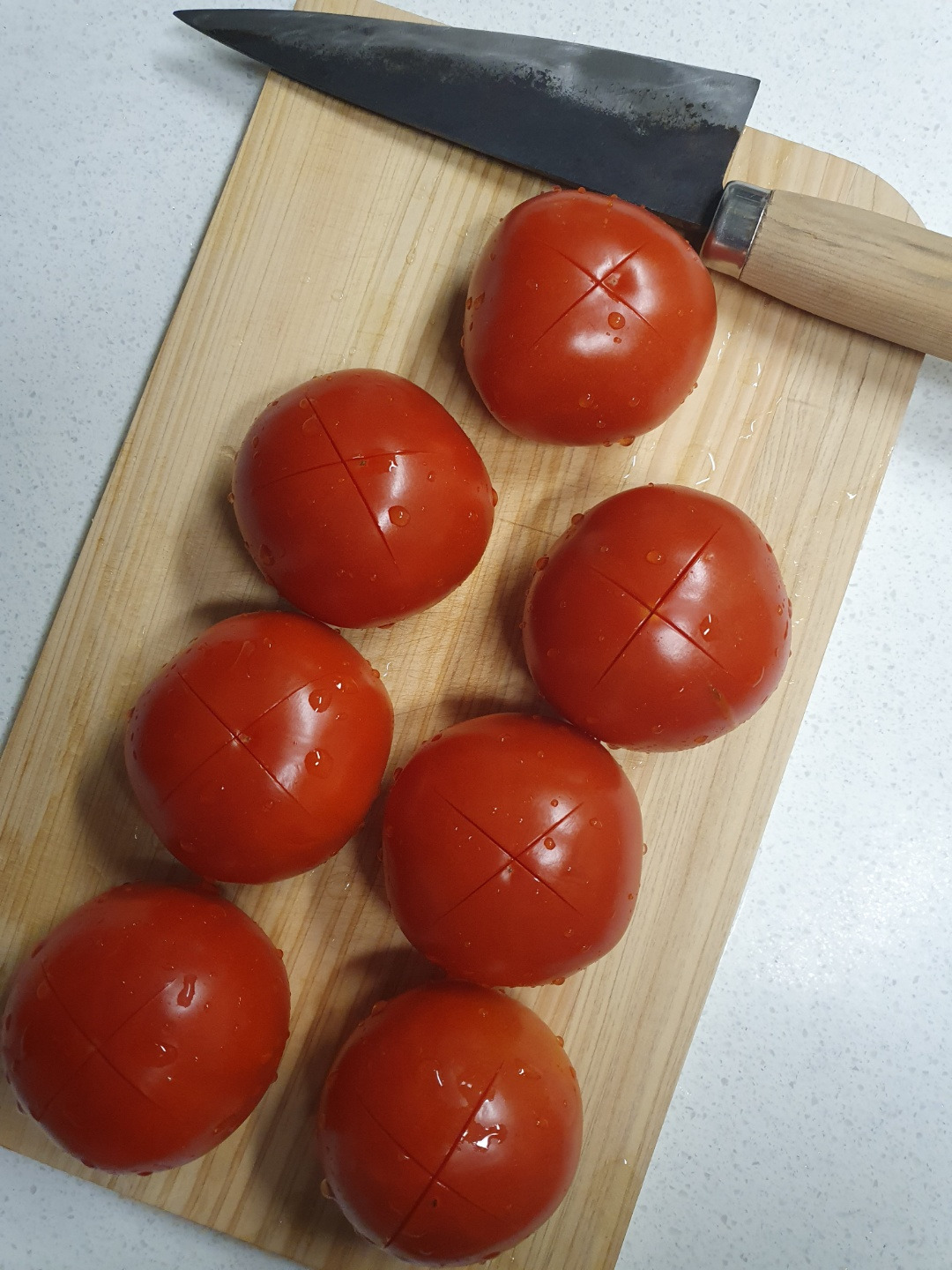 여름엔 비교적 토마토 껍질이 얇고 연해서 그냥 갈아먹기도 하는데