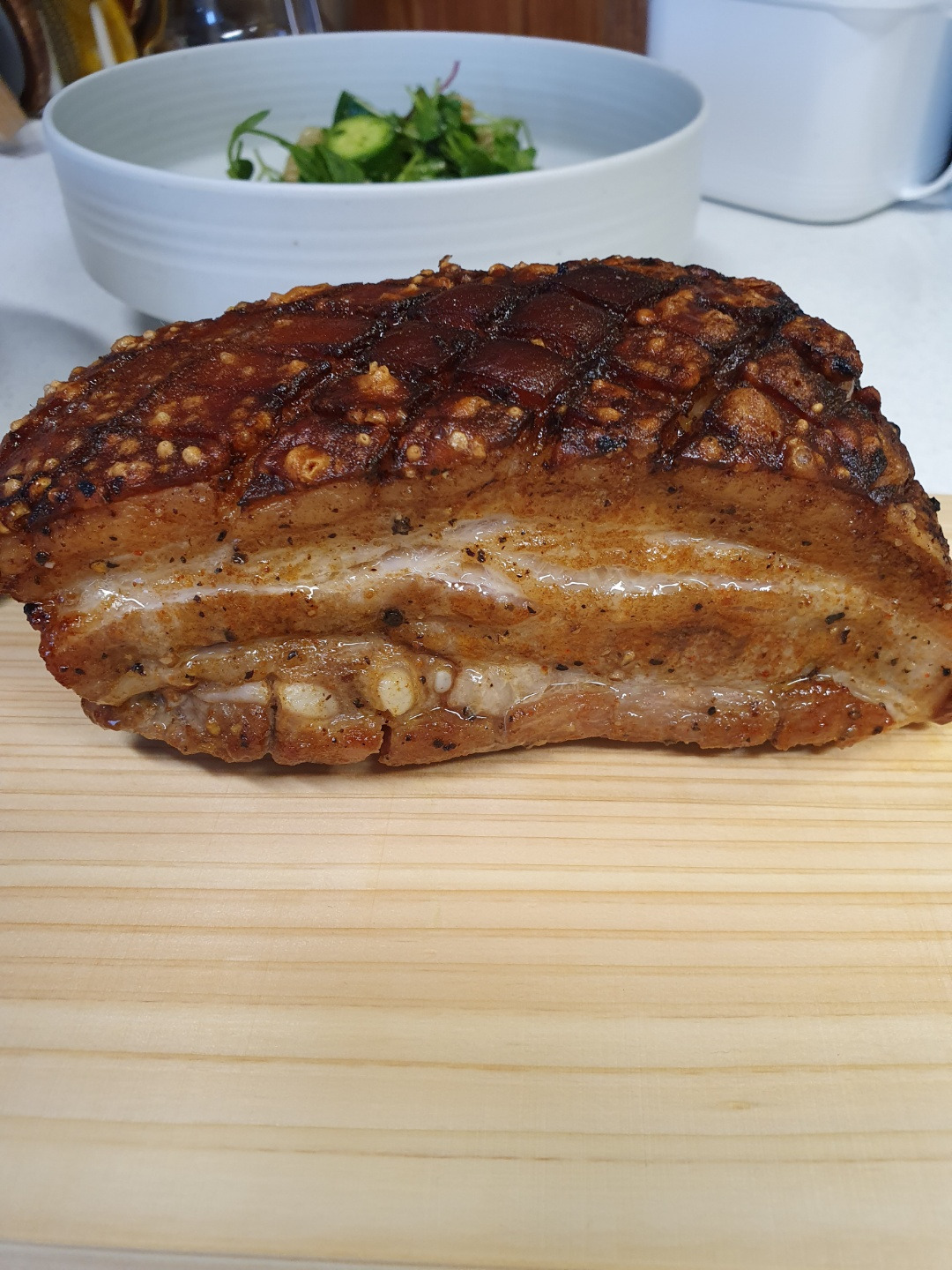 혹시 시간이 부족한 사람들을 위해 꿀팁을 방출했다. 껍질을 잘 닦아서 식초와 소금뿌리고 낮은 온도 130도정도에서 한시간을 구워낸다. 고기는 거의 익지않고 껍질만 건조시키는 방법이다.