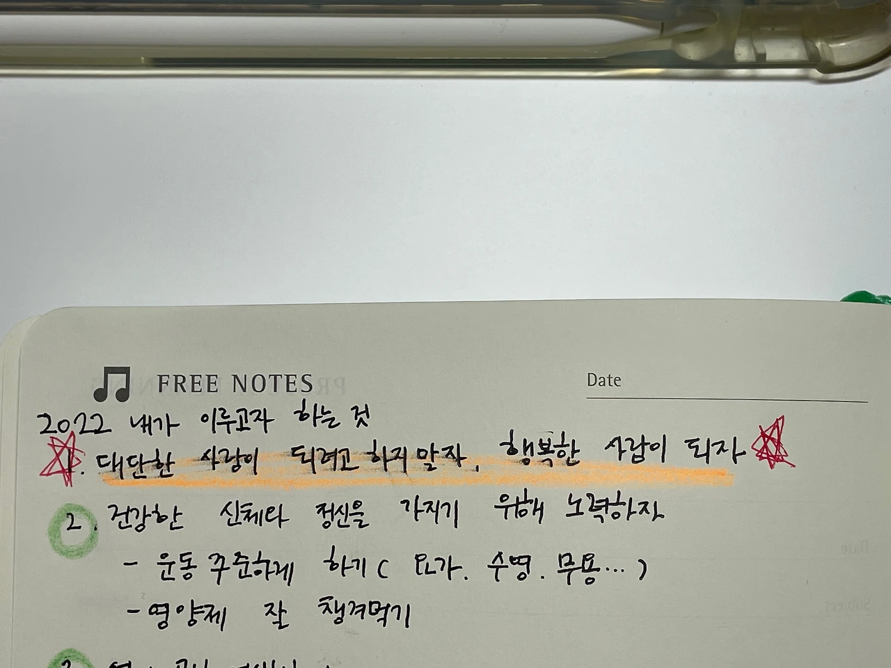 결과는 알다시피 불합격이었다. 불합격을 눈으로 확인했을 때 별로 슬프지 않았다. 불합격했다는 사실보다 12월에 되었음에도 좋아지지 않는 나의 몸이 더 신경 쓰였기 때문이다. 2022년 1월 다이어리를 펼쳐 나의 목표를 적었다.