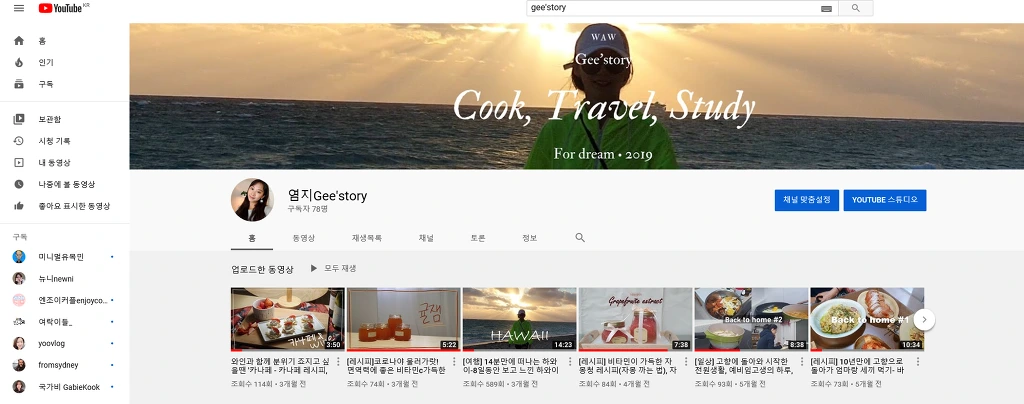 이 시기의 나는 인생에 있어서 가장 암울하고 적적한 삶을 살고 있었다. 대학교 내내 하고 싶은 것, 원하는 것, 목표한 것들을 이루기 위해 누구보다 활기 넘치게 살아오다 대학을 딱 졸업하고 나니 길을 잃은 기분이었다. 무기력한 하루하루를 보내던 중 생긴 꿈은 다시 나에게 생명력을 불어넣어줬다. 마음을 먹은 지 1시간 만에 영상 편집기를 다운로드하고 유튜브를 보며 편집 방법을 배웠다. 그리고 유튜브 채널을 개설해 영상을 올리기 시작했다. 하지만 실천력이 좋다고 한들 결과가 항상 원하는 대로 되는 것은 아니다. 2년 반전부터 시작했지만…. 아직도 구독자는 78명뿐이다. 힛^^: