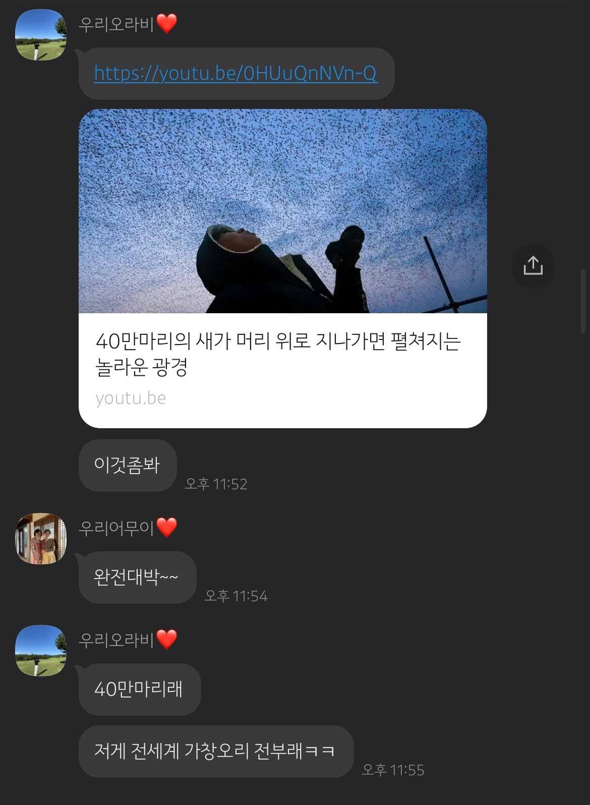 나의 우와는 새덕후님의 순수한 마음의 진정한 감탄이 담겨있었었다. 물론 영상 자체도 경이로웠지만.