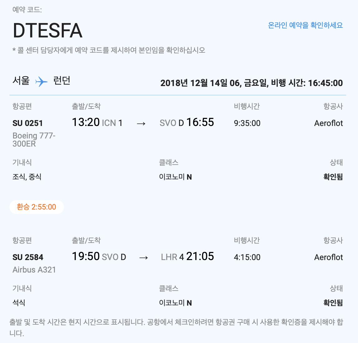 ‘세계일주 바이블’에선 항공권을 구매할 땐 항공사 홈페이지에서 구매하는 게 좋다고 했습니다. 중개업체를 통해 사면 편리하긴 하지만, 수수료도 붙고 혹시나 환불하게 되었을 때 그 절차도 복잡하다고 하더라고요. 그래서 항공사 홈페이지를 들어갔습니다. 검색엔진에서 보았을 때랑 똑같은 시간대의 항공권을 검색하고, 예약을 했습니다. 여권 이름, 성을 적고 (FIRST NAME과 LAST NAME은 잘 몰라서 인터넷 검색 한 번 했습니다) 여권번호도 적었습니다. 이메일도 적고, 카드번호도 적었죠. 그리고 버튼 하나 누르니까 메일로 항공권이 날아오더라고요.