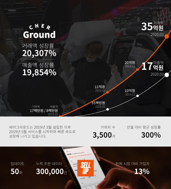 쉐어그라운드는 작년 5월 서비스를 개시한 첫 월 거래액은 1천7백만 원에서 35억으로, 첫 월 매출액은 8백만 원에서 17억 원으로 훌쩍 뛰었다.