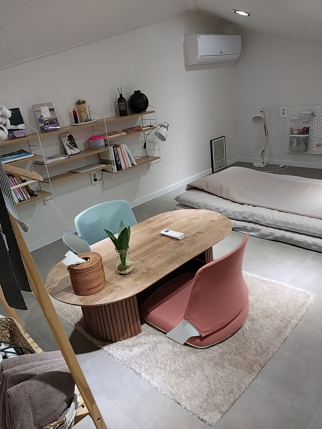 낯선 곳에서 쉬이 잠들지 못하는 나의 예민함이 발동할까 우려했지만 웬걸. 오랜만에 숙면을 취했다. 꿈까지 꿔가면서 말이다. 이른 아침에 일어나 1층 서점에 들러 읽고 싶은 책을 한 권 챙겨 다시 방으로 돌아왔다. 내가 묵은 곳은 이 숙소의 가장 꼭대기에 위치한 다락방인데, 서울로 돌아가면 내 방도 이런 느낌으로 다시 꾸미고 싶을 만큼 예쁘고 아기자기했다. 서점에서 챙겨온 책을 탁자에 가만히 올려두고 이 글을 쓰고 있다. 밖에는 풀벌레 소리와 새소리, 바람 소리 등 각종 자연의 소리들만 간간이 들려온다. 정말 평화롭고 조용한 동네다...라고 마무리 지으려던 찰나 갑자기 음악이 흘러나온다. 처음에는 서점에서 트는 음악인가 싶어 가만히 귀를 기울여봤는데, 갑자기 음악이 툭하고 끊기더니 방송이 흘러나왔다. 이 동네의 이장님이신 것 같았는데, 새벽 5시 30분에 집을 나간 어떤 어르신의 행방이 묘연하다는 방송이었다. 그분을 보신 분이 계시다면 가까운 파출소나 이장인 자신에게 꼭 알려달라는 내용을 세 번가량 반복하시고는 방송을 마치셨다. 안타까운 마음이 드는 한편 무사히 집으로 귀가하셨으면 하는 바람도 담아본다.