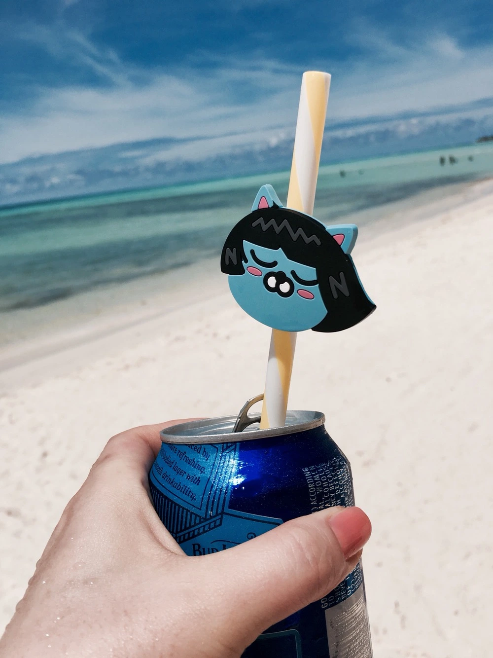 서울에서 준비해 간, 흥 자매 여행 아이템으로 치장한 맥주 캔.