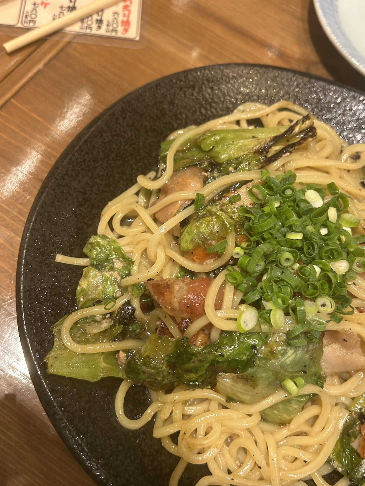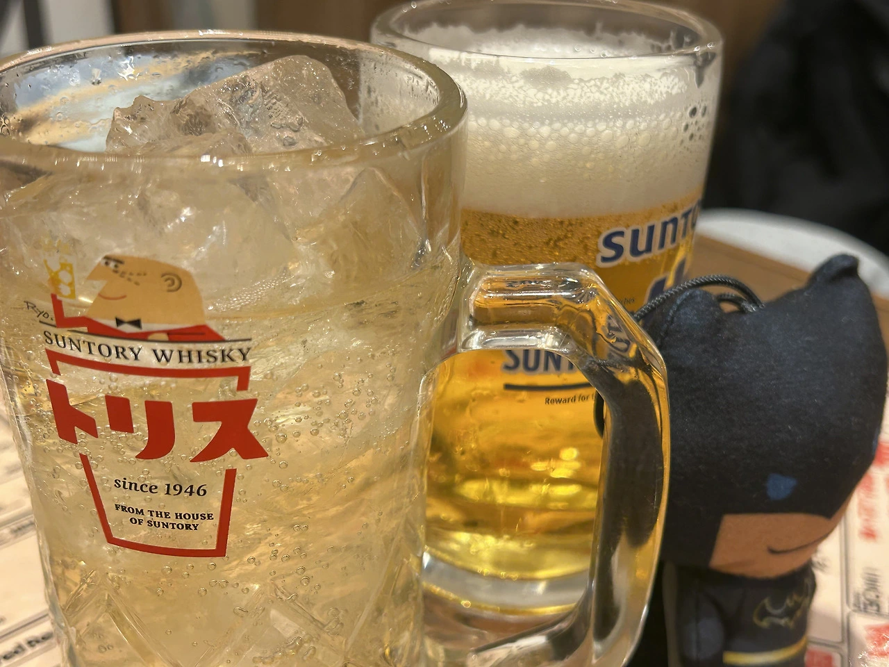 내가 시킨건 이름 기억 안나는 하이볼이고 친구는 키린 맥주? 를 시킴, 가라아게랑 오코노미야키, 야키 소바 먹음