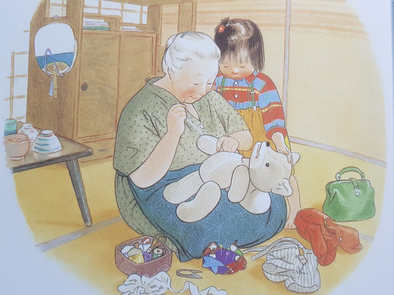 할머니가 푹신이를 고쳐 주는 사이, 은지의 표정과 행동을 좀 보실까요?