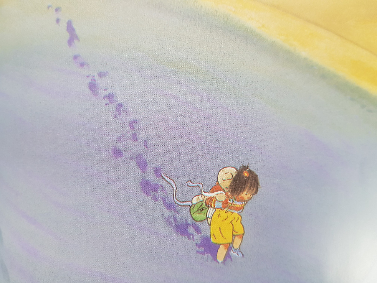 세 번째 불행 앞에서 은지는 이제 푹신이의 보호자가 됩니다. 푹신이를 업고 모래언덕을 내려와 할머니의 집을 찾아가지요. 푹신이의 도움만 받던 어린 은지가 이제는 푹신이의 보호자로 성장하는 순간입니다.