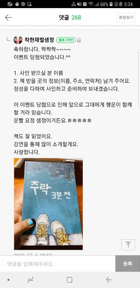 딱 한 번 스쳐 지나가듯 만난 사람의 책을 사서 읽고 댓글을 남긴다는 것. 그건 정말 정성 없이는 불가능한 일이다.