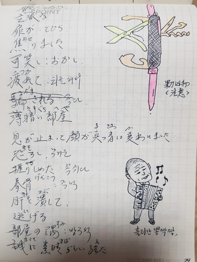 메모장 한 귀퉁이에 그려진 그림을 보고 역시 아버지답다는 생각을 했다. 발가락으로 연필을 쥐고 있는 모습을 그린 아버지. 아마도 직접 해보기도 했을 거다. 안 봐도 안다. 아버지는 늘 기록을 했기 때문에 볼펜과 샤프, 연필을 많이 가지고 있었는데 그중 한 녀석을 가지고 '발가락 꼼지락' 그림을 그렸을 거다.
