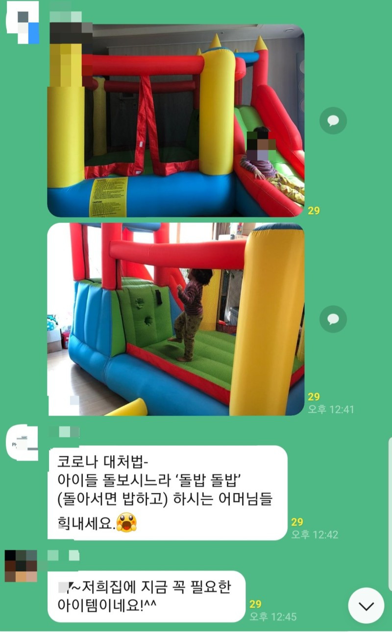 돌밥을 할 때 하더라도 아이들이 찡찡대는 걸 매일 보고 있을 수 없으니 엄마들은 특단의 조치로 장난감 대여 업체에 전화를 겁니다. 대기자 명단에 이름을 올리고 가까스로 덩치 큰 놀이기구를 집안에 들여놓으면 아이들은 물만난 고기처럼 펄떡펄떡 뛰죠. 엄마 입장에서는 그 모습이 칭얼거리는 것보다 몇 만배 견디기 쉽습니다.