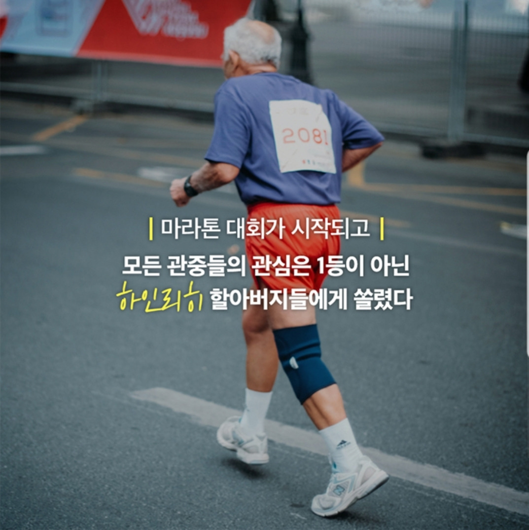 숱한 메달을 수상한 전력을 지닌 국민 마라토너인 그는 '마라톤의 진정한 승자는 1등이 아니라 완주자'라고 말을 해요. 묵묵히 달려나가는 마라토너들을 순위로써만 판가름하기에는 42.195km는 멀고도 먼 거리입니다. 그 먼 거리를 늦게 들어왔다는 이유로, 마라토너들에게 '패자' 라는 딱지를 붙일 수는 없을 듯 합니다.