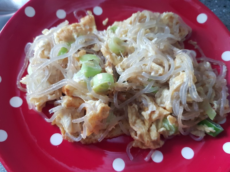 난해하고 거침없는 당면 대파 계란탕 부침. 고맙습니다.