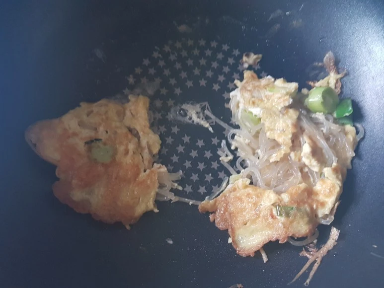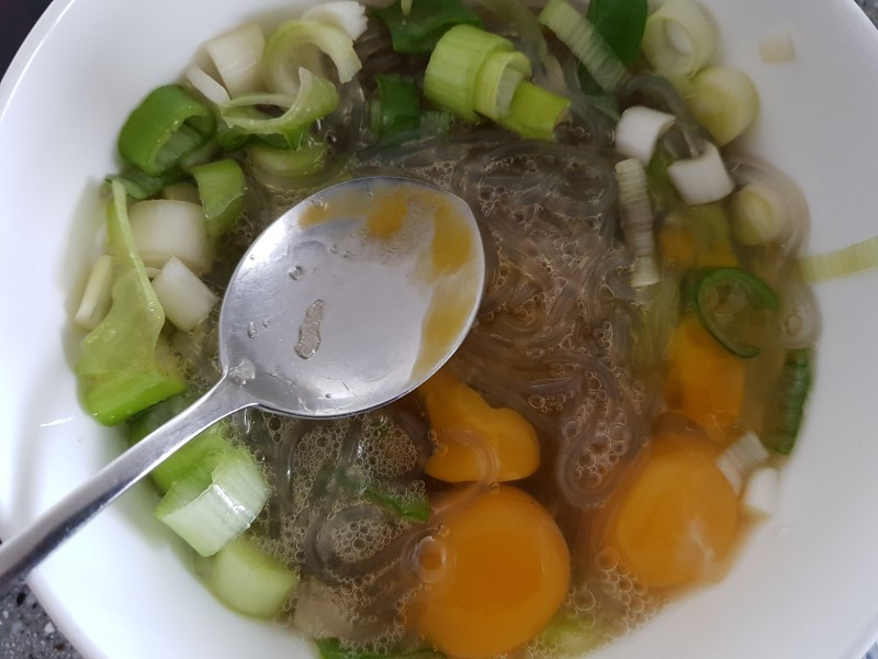 인정사정없이 깨트려 당면 대파 섞음에다가
