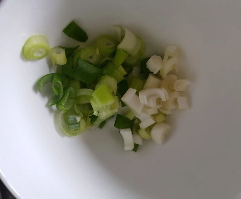 깍둑 썰기한 대파는 조화를 이루지 못하고