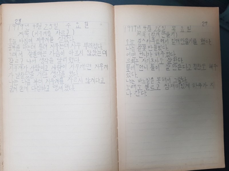 아래는 초등학교 3학년이던 1979년의 일기입니다. 지금으로부터 정확히 40년 전의 일입니다. 일기장도 늙었습니다.