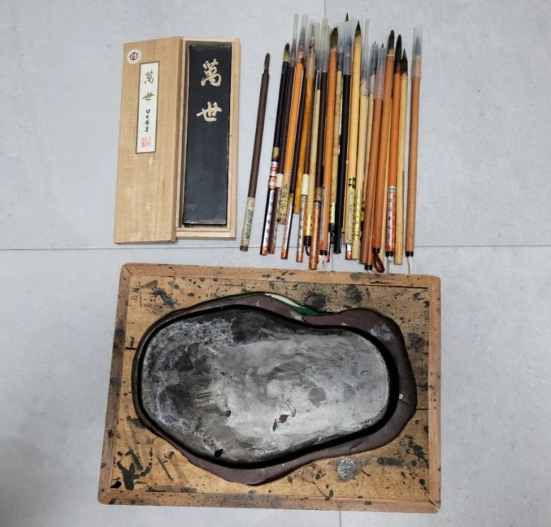 30년 넘은 아버지의 먹과 벼루와 붓들.