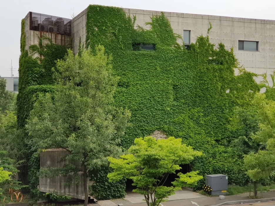 건물 외벽의 더러움이나 낙서나 균열도 담쟁이 이불 하나 있으면 싹 가려지거든요. 상처를 덮어주고 치료해 준다는 연고처럼 담쟁이가 그런 역할을 해내고 있나 보다 그렇게 여겨지기도 하죠.