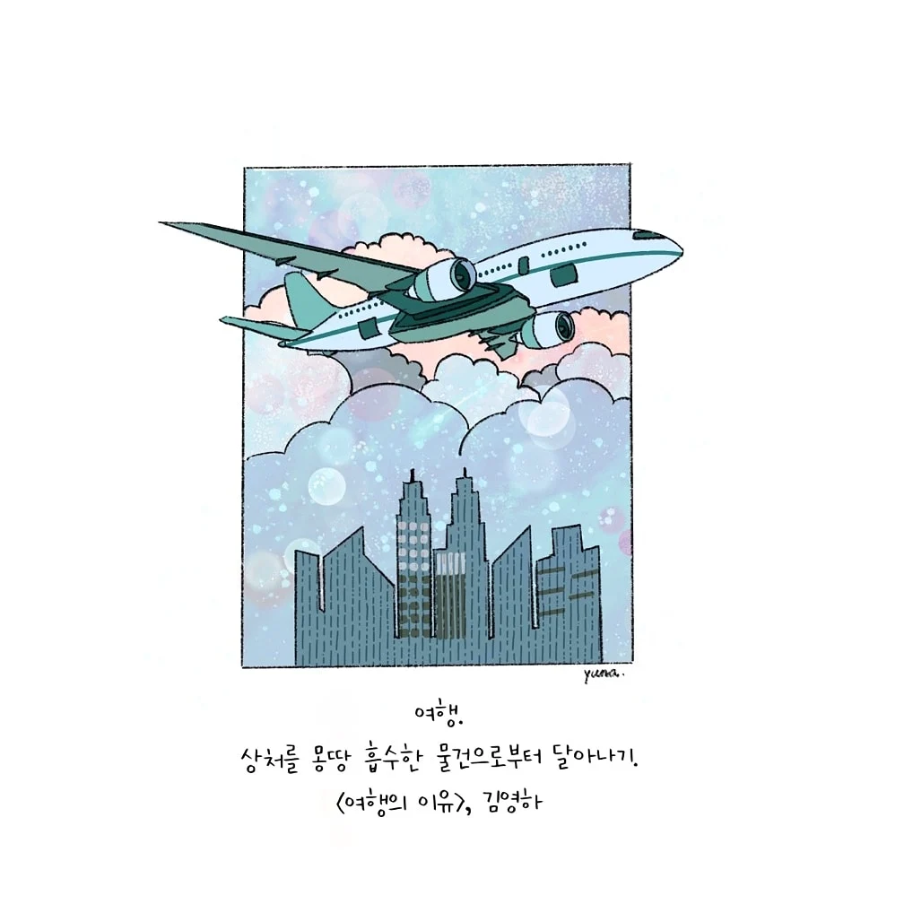 가장 이상적인 방법은 단연 ‘여행’이다. 김영하 작가는 그의 산문집 <여행의 이유>에서 이렇게 말했다. ‘나이가 들면서, 점점 더 사회적으로 나에게 부여된 정체성이 때로 감옥처럼 느껴지는 순간이 많아지면서, 여행은 내가 누구인지를 확인하기 위해서가 아니라 내가 누구인지를 잠시 잊어버리러 떠나는 것이 되어가고 있다.’ 한편, 해당 책의 직관적인 목차 하나에도 공감하지 않을 수 없다. 예를 들어 ‘상처를 몽땅 흡수한 물건들로부터 달아나기’와 같은 것들 말이다.