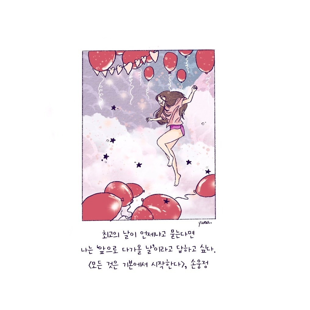 “It could’ve been worse (이 정도로 다행이야).”라며 ‘지금, 여기’에 감사하는 말을 더 선호해 왔지만, “The best is yet to come (가장 좋은 때는 아직 오지 않았어).”라는 말에도 무게를 싣기로 한다. 지난 삶을 되돌아볼 때 어제보다 나은 오늘, 오늘보다 나은 미래를 맞이하는 날은 분명히 오곤 했다. 이제는 두 구절을 모두 품고 살아가는 용기를 내야 하지 않을까? 시간은 ‘흐름’일지언정 오늘과 내일을 분리하는 ‘단절’이 아님을 알기 때문이다.