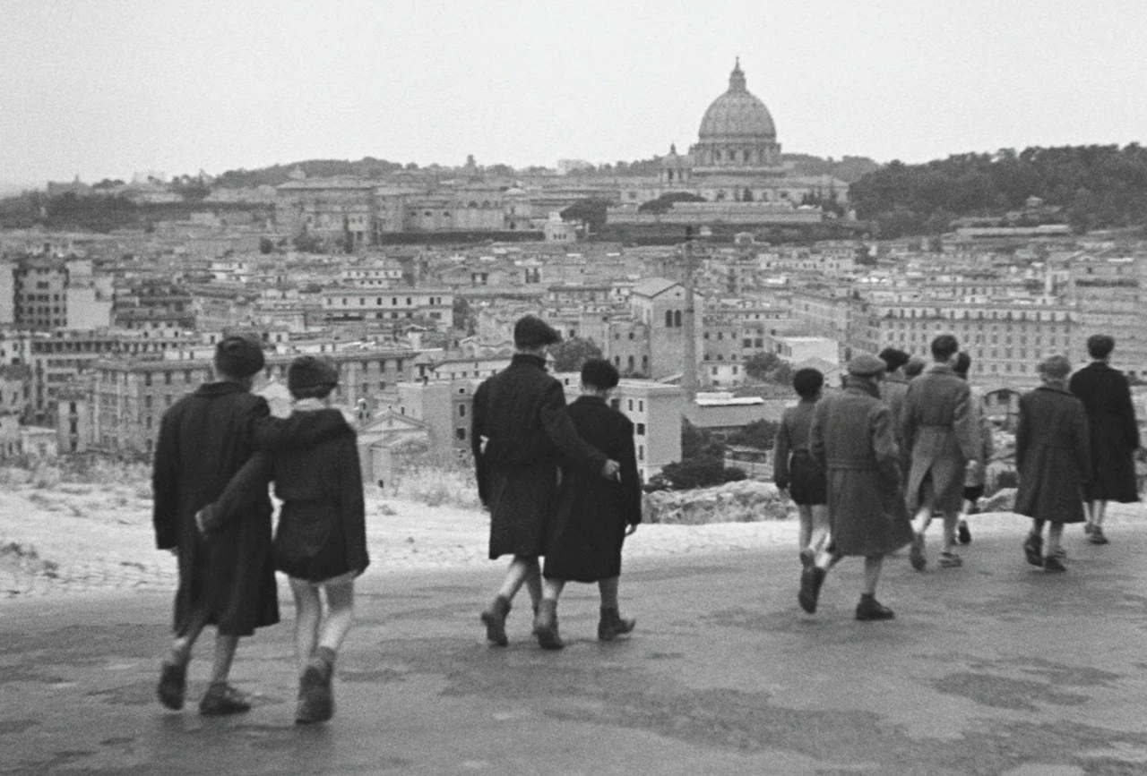 넷째는 마지막 장년에서 아이들이 아이들이 로마의 거리를 배회하는 모습은 카메라가 멀리서 포착한 롱숏이다. 아이들은 처형 장면을 목격하고 체념하듯 뒤를 돌아서곤 다같이 발을 맞추어 어디론가 걸어간다. 이 장면에서는 딥 포커스(deep focus)를 사용하여 아이들이 배경의 도시와 함께 한 화면에 담기는데, 전쟁의 아픔을 담고 있는 도시와 아이들의 발걸음이 한 화면에 놓인다. 레지스탕스와 신부의 순교라는 개인의 이야기는 아이들의 발걸음을 통해 개인의 이야기가 이탈리아 사회 전체와 연결되어 있음을 보여준다. 이 마지막 시퀀스는 비교적 느린 편집 리듬을 유지하며 아이들이 걸어가는 모습을 천천히 따라가는데, 아이들의 걸음이 아픈 현실을 딛고 나아가는 이탈리아의 미래에 대한 희망을 암시하며 관객이 영화가 제시하는 현실을 차분히 받아들이게 한다.