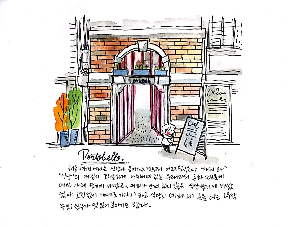 처음 여행에서는 식당에 들어가는 것부터 어려웠다. 흔히 커피를 마시는 '카페'와 밥을 먹는 '식당'의 구분이 뚜렷한 한국의 문화 때문에 매번 커피 마실 '카페'찾기에 바빴고, 끼니를 해결할 '식당'찾기에 바빴다. 고민 없이 '여기로 가자' 하며 식당(또는 카페)의 문을 여는 (유학 중인) 친구가 부럽고 멋있어 보이기도 했었다.