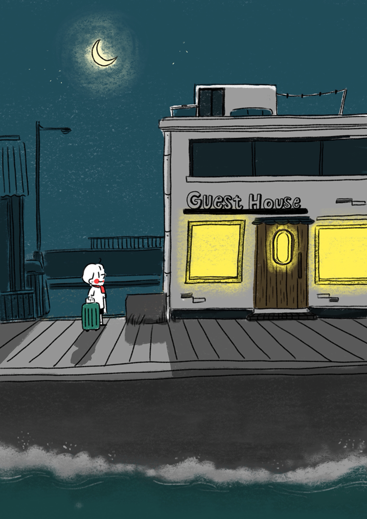 내가 스텝으로 지낼 게스트하우스는 모슬포항에 있었다. 늦은 저녁에 도착한 비행기에서 내려 짐을 찾고 버스를 탔다. 제주에 가면 나는 같은 한국이지만 마치 다른 나라에 온 관광객처럼 변해버린다. 낯선 땅이라는 기분에 긴장을 바짝 하고 비행기에서부터 한숨도 못 자고, 버스에서는 짐을 꼭 붙들고 핸드폰으로 내려야 할 정거장을 놓치지 않도록 버스 방송에 귀를 쫑긋 세우고 앉아있었다.
