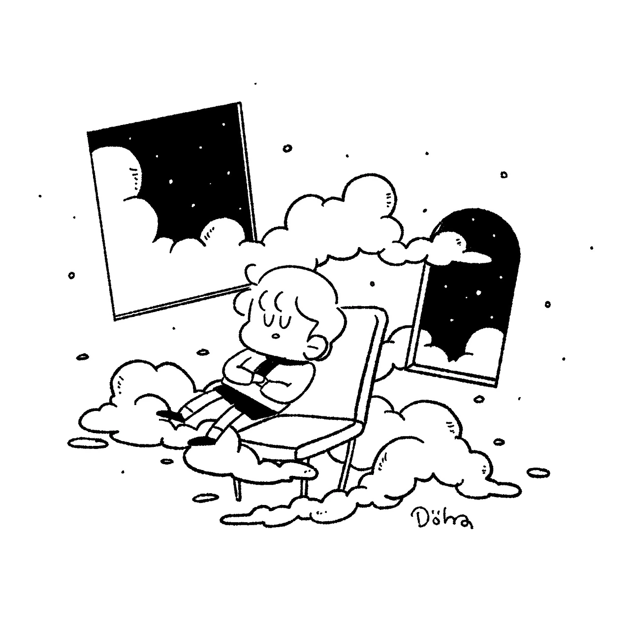멀미가 오기 전 잠에 빠져드는 것처럼 나에게도 비슷한 능력이 있어. 나는 걱정을 금세 잊어버리는 능력이 있지. 걱정이 가져오는 고통이 오기 전에 그 순간에서 벗어나는 거야. 마치 잠에 드는 것처럼. 물론 완벽하게 그 걱정에서 벗어나는 건 아니야. 그래도 그 순간만큼은 걱정에 휘둘리지 않도록