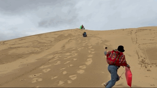 우리는 모래 언덕에서 썰매를 두세 번 정도 탔다. 우리는 초등학생이 된 듯 연신 깔깔 거리며 웃었다.