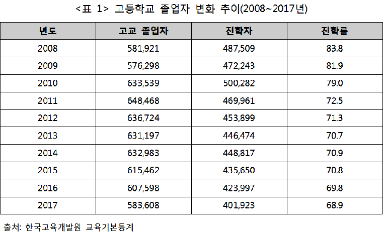 그렇다면 이 통계를 고교 교사 입장에서 이야기해보고자 한다.