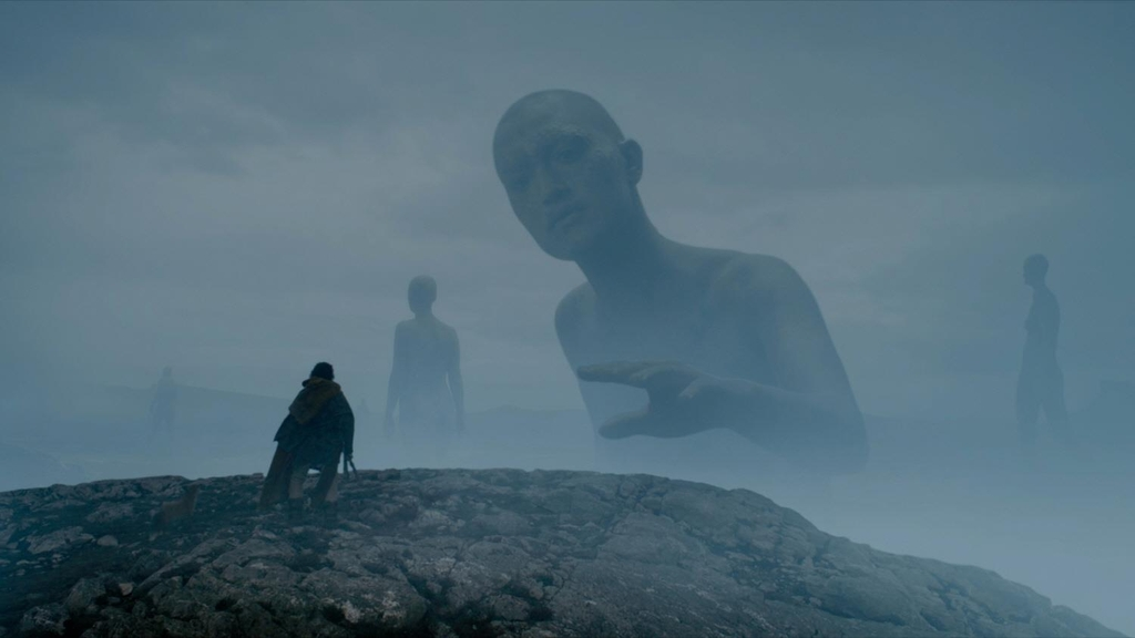 카메라는 한 바퀴 돌며 앙상한 백골이 된 가웨인을, 다시 한 바퀴 돌며 어떻게든 살아보려 몸부림치는 가웨인을 보여준다.