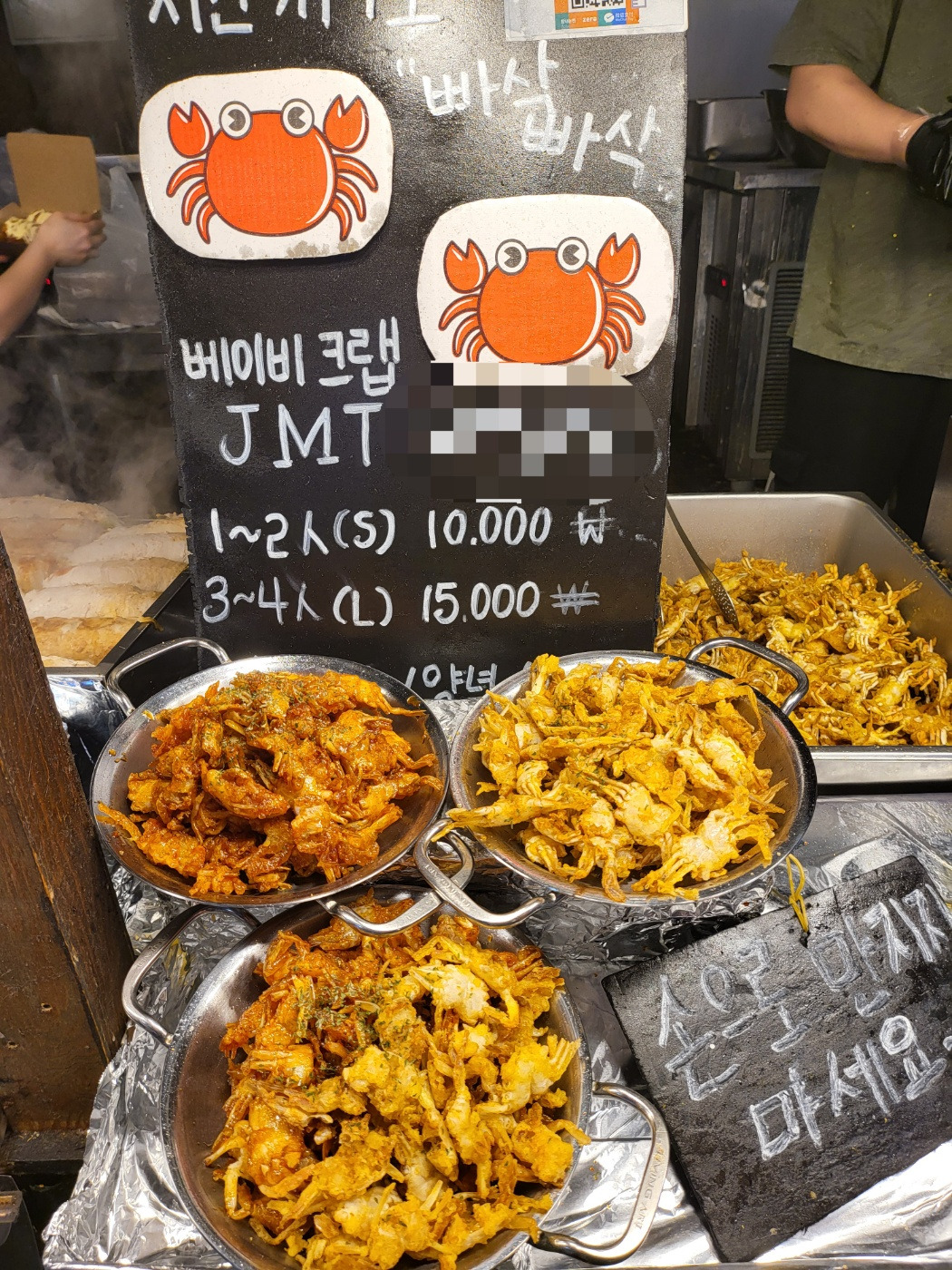 메뉴판에는 "베이비 크랩"이라 적혀 있지만, 제주도 토박이의 입에서는 '깅이'라는 단어가 먼저 튀어나온다. 오랜만에 보는 음식이다. 어릴 적, 집에서 어머니가 튀겨주던 깅이. 오랜만에 보는 음식에 어머니의 발걸음도 멈춰 선다. 소자 하나를 구입한다. 너희 어렸을 때, 깅이 죽 해주려다 믹서기 고장 났었는데- 어머니와 내가 같은 시절을 떠올린다.