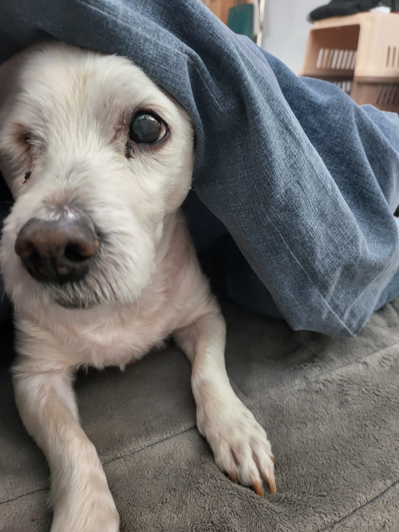 아- 강아지 옷도 빨아야 하는데- 추워하는 녀석이 안쓰러워 겨울 옷을 여러 벌 꺼내 입혀 주었지만 오래 입질 못한다. 털이 복슬할 때 입히던 옷이라 그런가- 헐렁한 옷이 금세 흘러내려버린다. 한쪽 팔을 벗은, 혹은 치맛자락처럼 두 앞발이 모두 빠져나와 질질 끌리는 모습을 보면 귀여워 웃음이 터져 나오지만, 냄새만은 그렇지 않다. 흘러내린 채로 소변을 보니, 옷에도 잔뜩 묻어나는 것이 문제다.