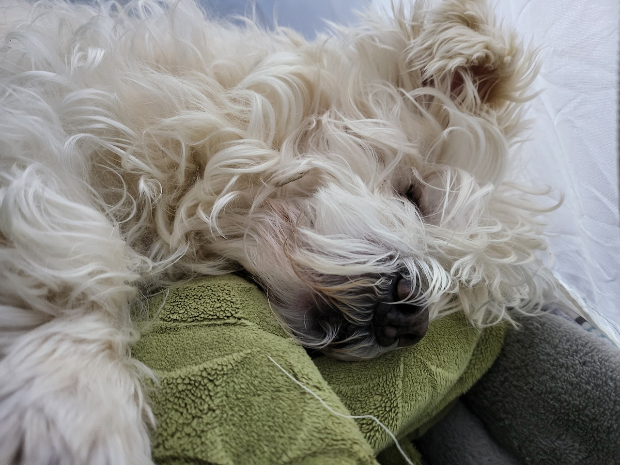 깨우지 않으려 했건만, 꼼지락거리며 핸드폰을 손에 쥐었더니 어느새 일어나 버렸다. 한두 차례 누나의 얼굴을 핥다가 신이 난 듯 이불 위를 폴짝거린다. 누나가 출근을 하지 않는, 여유롭게 산책을 나설 수 있는 시간임을 알고 있는 게 분명하다. 간식을 갈망하던 여느 때와는 달리 고개를 갸웃거리며 산책을 가고 싶다는 신호를 보내온다. 여유로운 산책을 갈 수 있는 날임은 분명하지만, 누나는 온기를 포기하고 밖으로 나설 용기가 쉽게 나질 않는다.