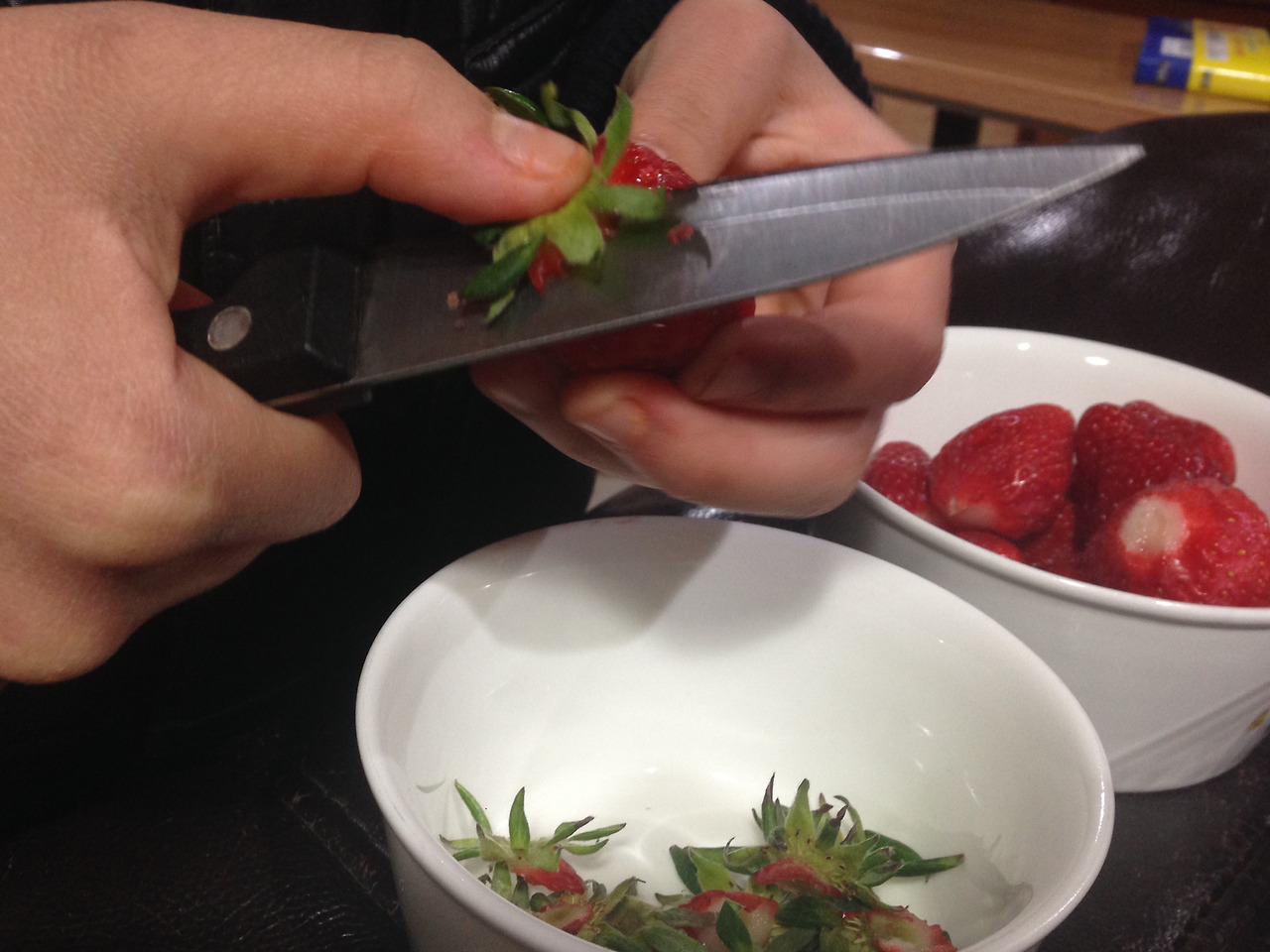 한동안 칼질 안 하다가 오랜만에 칼을 잡아서 그런지 딸의 손이 파르르 떨린다. 도마에 놓고 자르는 것보다 어디에 의지할 데가 없어서 더 난이도가 높은 칼질이다. 왼손은 딸기를 쥐고, 칼을 쥔 오른손 엄지로 딸기 꼭지를 누른 상태에서 칼질을 해보라고 했다. 한두 번, 하루이틀 해보더니 이제 드디어 제 손으로 딸기 꼭지를 따고 딸기를 씻어먹을 수 있게 됐다. 이제 딸기만 사다 놓으면 된다. 이제 니 딸기는 니가 씻어먹어라ㅎㅎㅎ