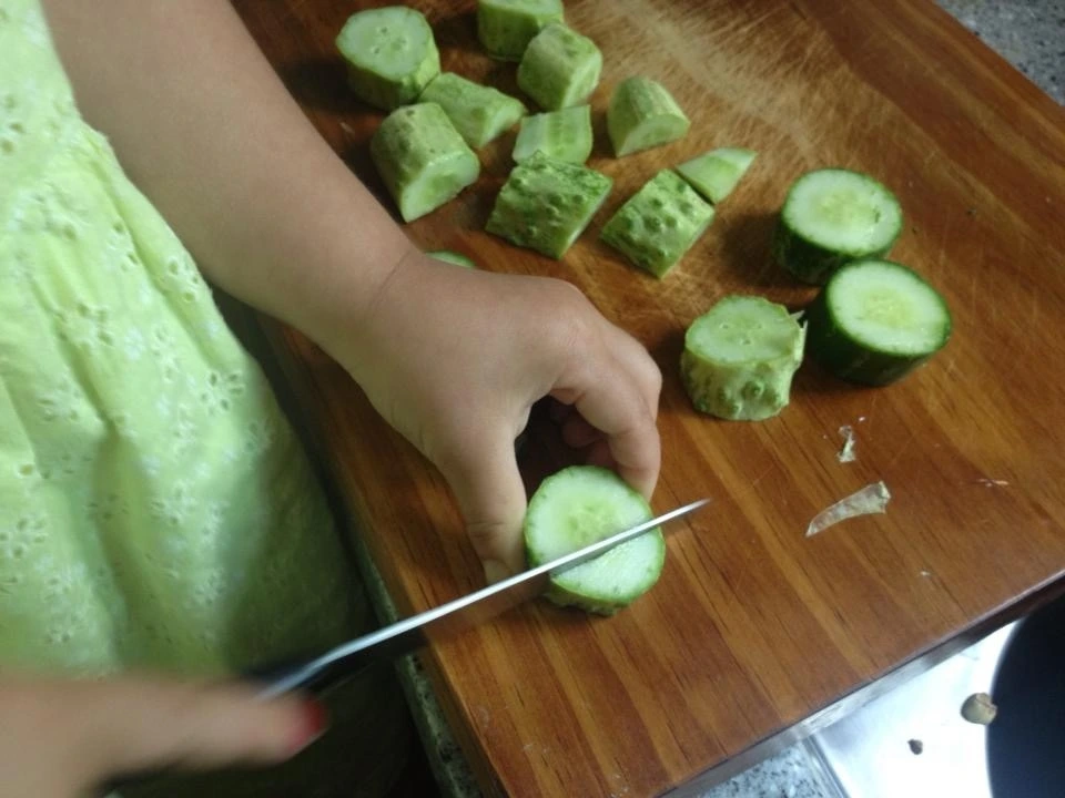 딸에게 칼을 쥐어줬다. 무딘 과도부터 시작했고, 오이처럼 잘 썰리는 것부터 썰게 했다. 처음 썰었던 것이 오이였던 거 같은데, 그때 즐거워하는 모습을 보면서 역시 인간은 호모 파베르(Homo Faber)라는 것을 실감했다. 도구를 사용한다는 것, 도구를 사용해서 스스로 뭔가 만든다는 것은 본능에 가까운 일이며 큰 쾌감을 선사한다.