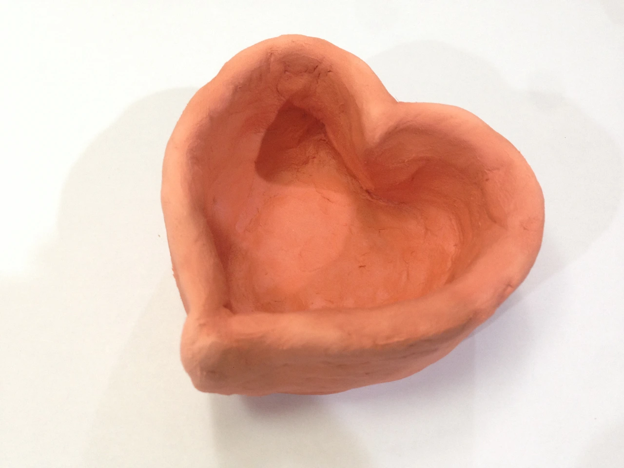 정말 점심시간에 맞춰 점심을 먹었다. 양치질까지 하고 1시 30분 정각에 칼 같이 착석하여 나 홀로 미술 수업을 이어갔다. 찰흙으로 '내 모습'을 만드는 거라고 했다. 찰흙을 만지작거리더니 찰흙을 보니 집이나 그릇을 만들고 싶은데 그래도 되냐고 물었다. 이번에 집을 지어 보니까 집은 집주인을 닮는 것 같다고 얘기해주었고, 뭘 만들어도 그건 자신의 모습을 닮게 되는 것 같다고 했다. 구상이 끝난 듯 찰흙을 비벼대기 시작했고 꼬박 한 시간 만에 하트 모양의 그릇을 빚어냈다. 짜잔~!