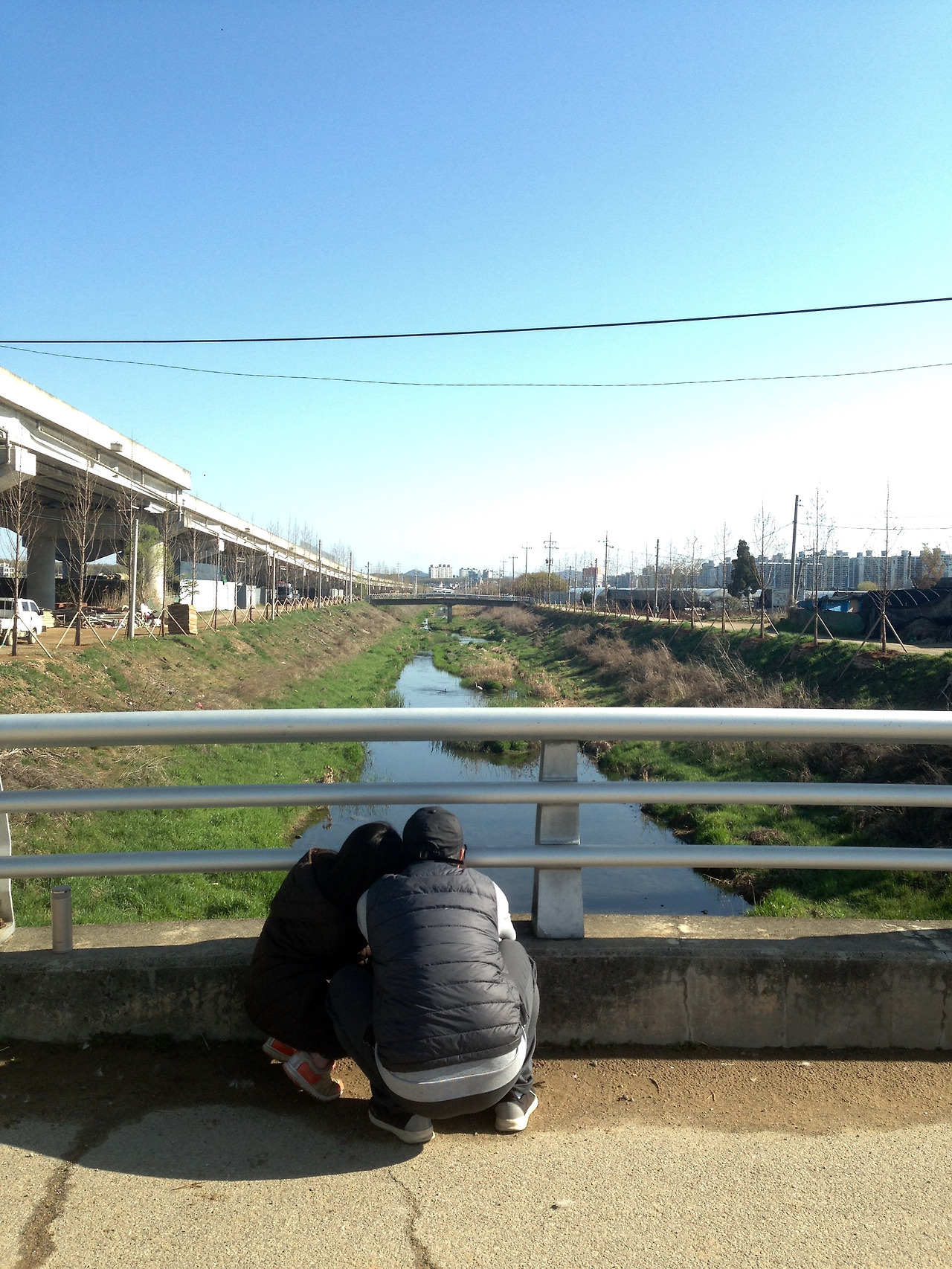전날 비가 와서 그런지 하늘도 맑고 물도 맑았다. 최근 어지러운 마음이 정화되는 느낌이었다. 지난주 보이지 않았던 (흰뺨검둥)오리들이 대거 나와 있었고, 옆에 백로가 한가히 노닐고 있었다. 모래톱 위로 알락할미새(너무 작아서 맨눈으로 보면 벼룩이 톡톡 뛰는 것처럼 보임)가 분주하게 오가고 있었다. 오늘 우리가 보고자 하는 새는 얼마 전 이곳에서 목격된 왜가리와 민물가마우지, 황조롱이였다. 습지에 도착한 후 얼마 후 가마우지와 왜가리가 나타났다. 새를 쫓아 이리저리 왔다갔다 하니 오히려 새를 쫓는 꼴이었다. 그런 나를 보더니 딸이 한 소리했다.