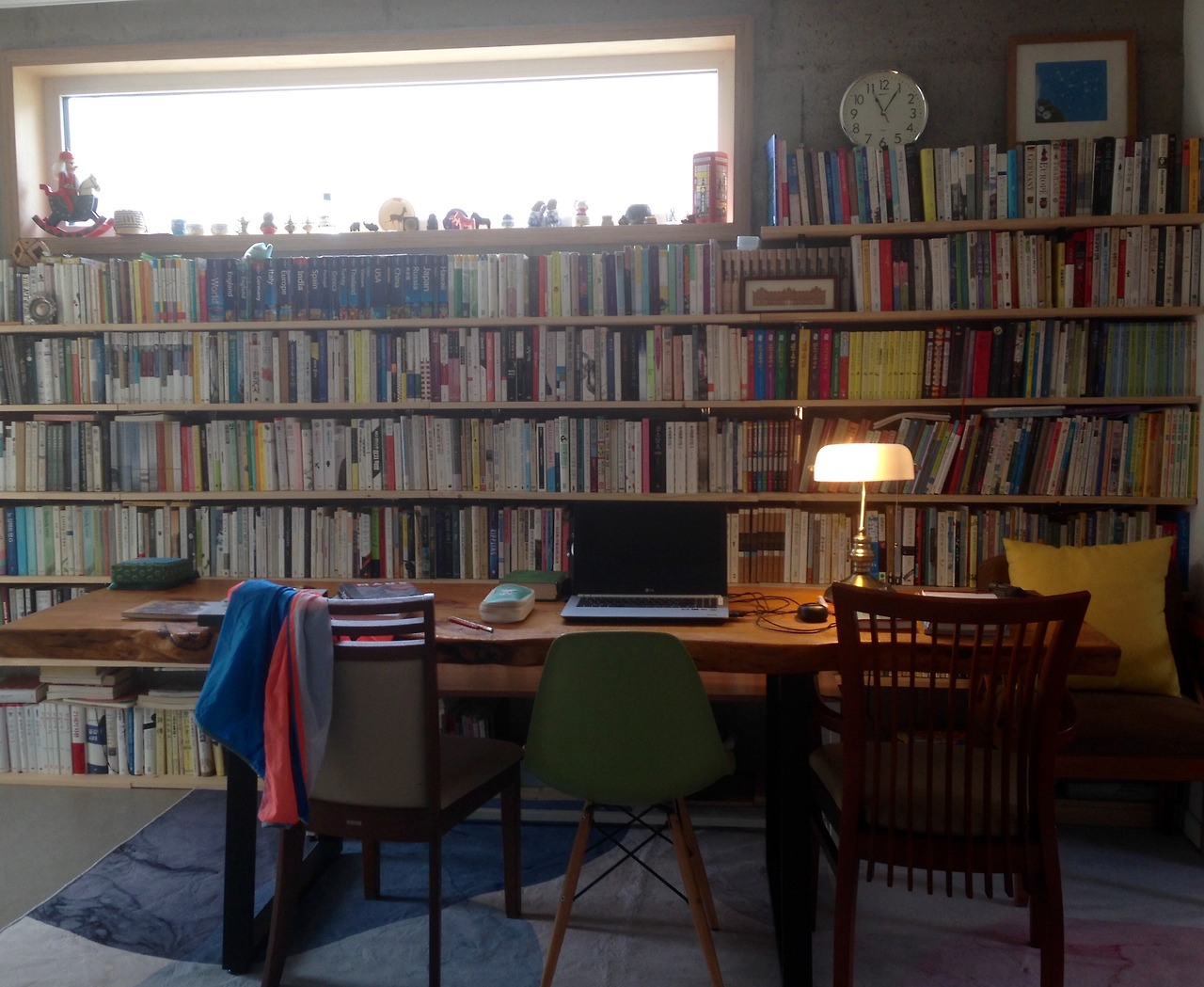 가까이 보면 여러 가지로 어설프기 짝이 없는 책장이지만 조금 떨어져서 보면 북카페 같다고들 한다. 친구들이 농담으로 커피랑 책 팔아서 대출 갚으라고 한다. 애초 꿈꾸었던 컬러가 만들어내는 우연은 아니지만 또 다른 우연의 마주침이 발생하고 있다. 나는 그 우연의 마주침을 한동안 즐기게 될 것 같다.