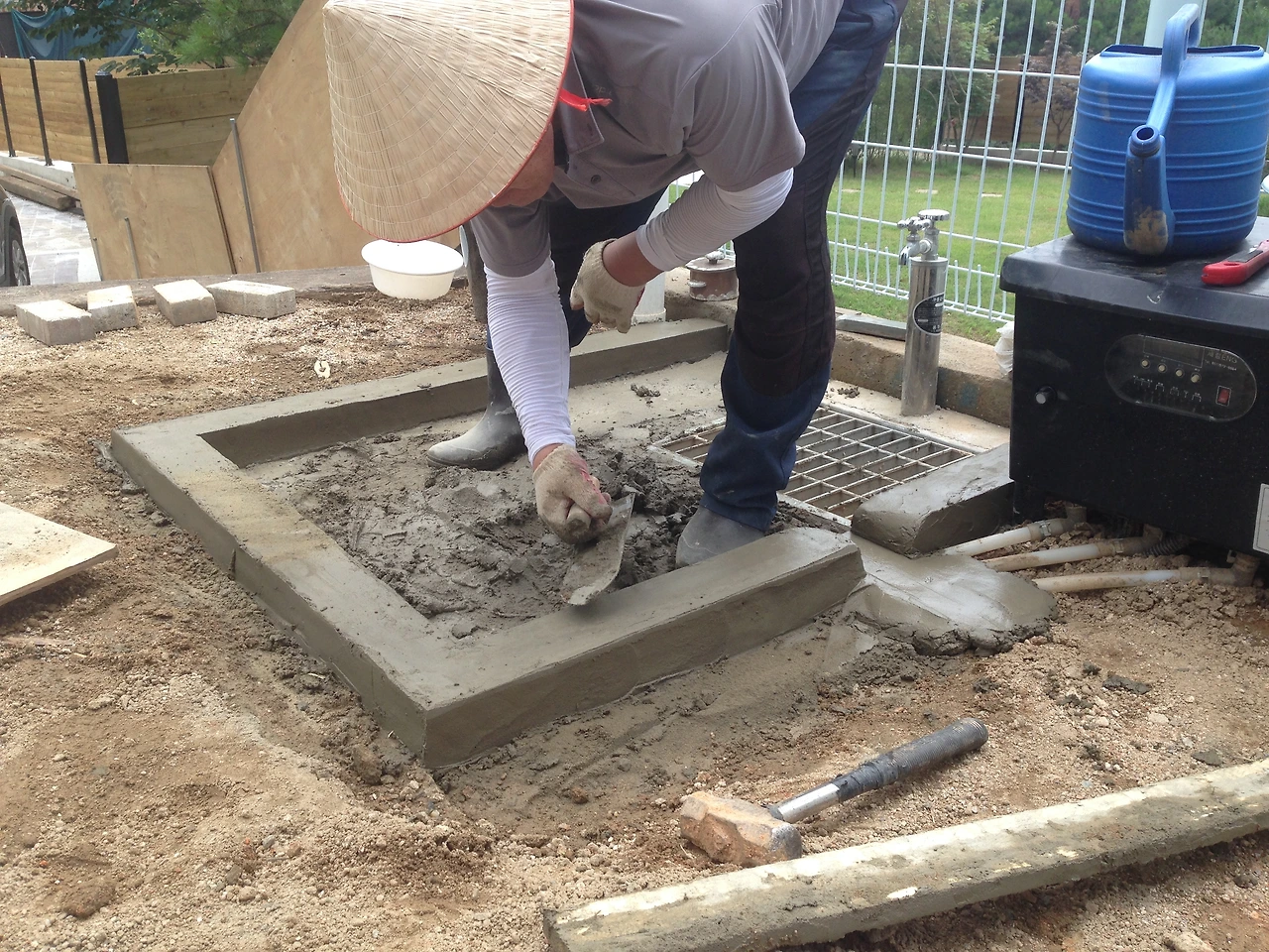 집 지으면 꼭 만들어야지 하며 일찍부터 벼르기도 했고, 막상 살아보니 꼭 필요한 게 마당 수돗가다. 마당 이래 봤자 손바닥만 한 작은 마당이지만, 우리 라이프스타일에 수돗가는 꼭 필요했다. 마당 수돗가에서 텃밭에서 바로 뽑아온 채소를 씻고, 쪼그려 앉아 수건도 빨고 걸레도 빨고, 산책하고 와서 어푸어푸하며 세수하고 발에 묻은 흙을 씻어내고, 여름에 반려견 여름이 목욕도 시켜주고, 화분도 물도 주려면 수돗가가 필요했다. 딸이 말만 하면 바로 뚝딱뚝딱 만들어내는 나의 맥가이버, 아버지가 다시 등판하셨다.