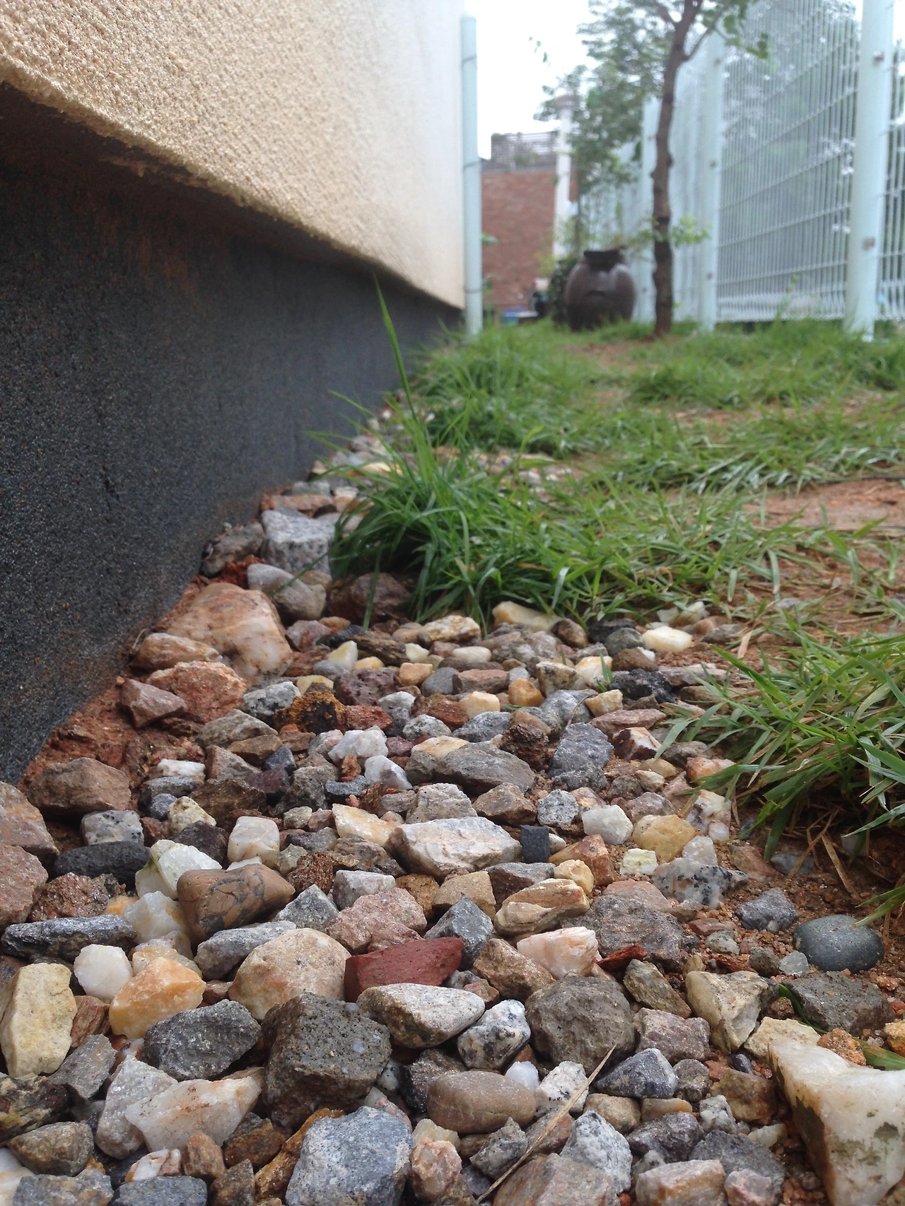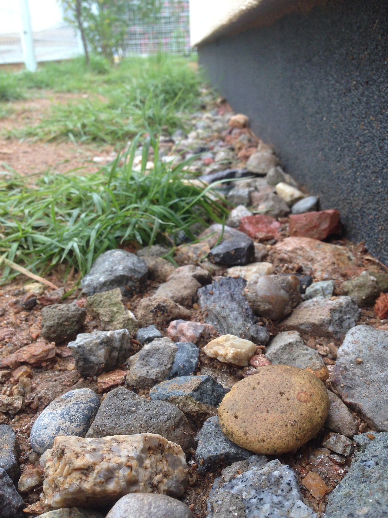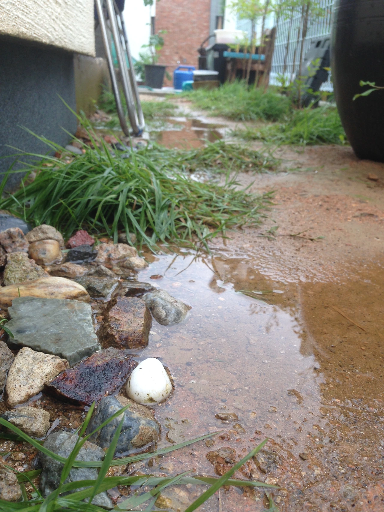 비가 오는 와중에 우리는 소소한 토목공사 중이다. 틈만 나면 동네 산책하며 길거리에 나뒹구는 돌을 하나둘 주워와서 집 기초 하단부를 채우고 있다. 비가 거세게 들이치다 보니 흙이 파이면서 기초가 드러나기도 하고 하얀 집 벽에 흙물이 튀어올라 오염이 되고 있어서 이걸 조금이나마 저지시켜보려는 것이다.