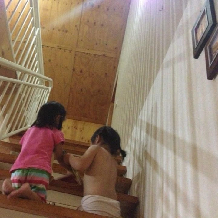 우리가 디테일에 가장 신경을 많이 쓴 곳도 계단이다. 가장 마음에 드는 곳도 계단이다. 보통 계단이 집의 한쪽 벽에 붙어 폐쇄적인 것과 달리 우리 집 계단은 집의 한가운데, 즉 센터에 있다. 사실 처음 이런 설계안이 나왔을 때는 너무 낯설어서, 작은 집에 비효율적인 것 같아서 당황했다. 하지만 우리 건축가들은 확신을 가지고 우리를 설득했고 우리는 동의했다. 2층에 얼마의 면적을 포기하면서 닫힌 공간이 아니라 거실로 활짝 열려 있는 공간으로 설계했다. 계단 폭도 넓게, 계단참은 넉넉하게, 난간 디자인은 심플하게 평철로 마무리했다. 계단을 지나다니는 통로로 생각하면 비효율적일지 몰라도 실제 하나의 공간으로 보면 활용도도, 만족감도 매우 높다. 우리 집 계단을 보고 동선에 너무 많은 면적을 빼앗긴 것 같다고 걱정을 하신 건축 설계사이신 이웃도 있었지만, 놀러 오는 대부분의 사람들은 계단 예쁘다고 많이들 칭찬한다. 난간을 작업하신 작업자 분께 말씀드렸더니 흐뭇한 미소를 지으셨다.
