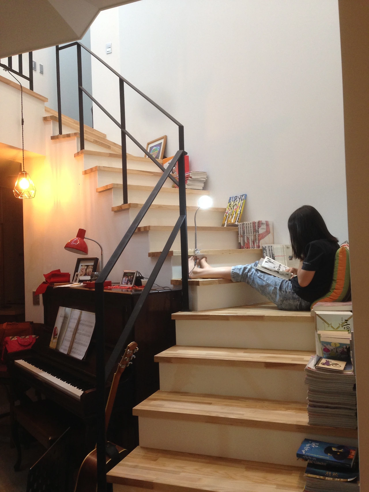 우리는 계단을 오르내리기만 하지 않는다. 남편만 빼고 나와 딸은 계단에 자주 앉아있는 편이다. 집의 한가운데 위치한 우리 집 계단은 단순히 1층과 2층을 연결하는 통로일 뿐만 아니라 앉아서 쉬고, 책(계단은 주로 만화책)도 보는 또 하나의 공간이다.