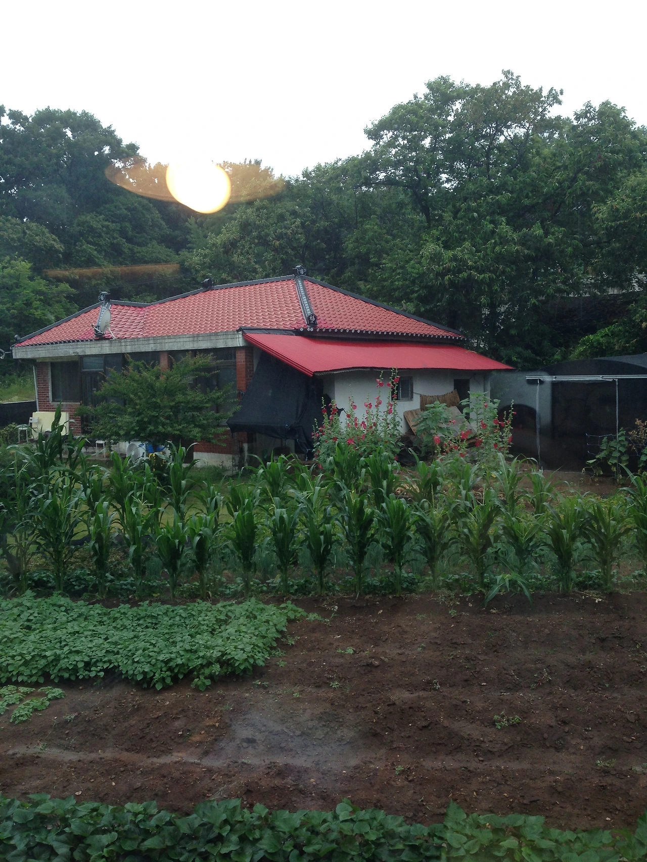 한 달쯤 지났을까, 대충 살림살이가 자리 잡아갈 무렵, 꽃이 잠깐 피고 말았나 생각할 무렵, 나무 위쪽이 불긋불긋해지는 것을 보았다. 지척의 거리지만 옥수수의 높은 키에 가려져 있기도 해서 그 붉은 색이 꽃이라고는 생각을 못했다. 하지만 날이 갈수록 붉은 기색이 나무 전체로 퍼졌고, 색도 선명해졌다. 마침 밭에 일하러 나온 할머니에게 물었다.