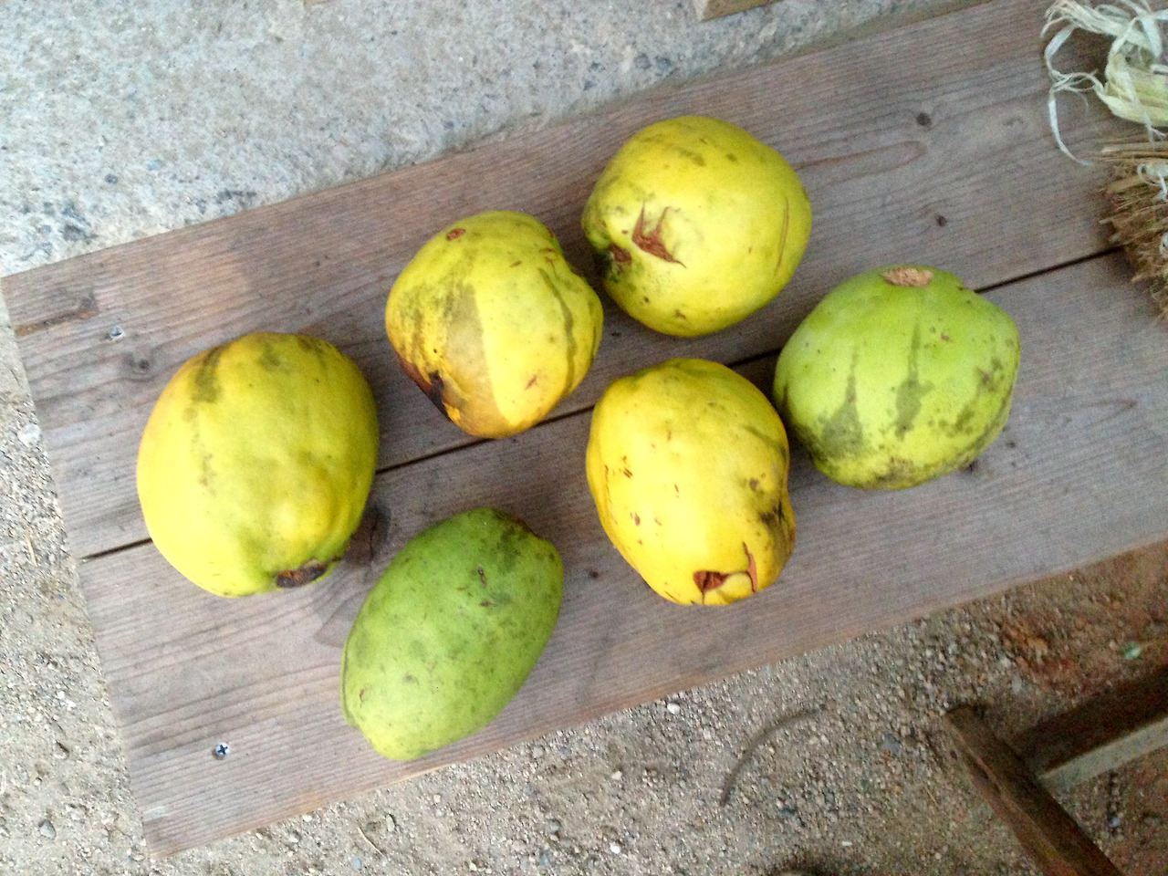 나는 매일 아침, 저녁으로 동네를 산책한다. 어느 날 내 발 밑에 모과 한 알이 떨어졌다. 모과를 모르는 사람이 봐도 '모과'라는 말이 떠오를 정도로 '모과'답게 생긴 '모과'였다. 거친 돌바닥에 쿵 하고 떨어진 탓에 상처가 나기도 했고, 아무리 모과라고 해도 너무 심하게 울퉁불퉁하게 생겨서 소유욕이 생기지 않아 그냥 지나쳤다. 그리고 다음 날, 그다음 날에도 모과가 내 앞에 나타났다. 그렇게 여러 날을 보다 보니 나에게 손을 내미는 것 같은 느낌을 받았다. 그렇게 그냥 지나칠 수 없어 한 알 두 알 주워 모은 모과가 어느새 한 바구니가 됐다.
