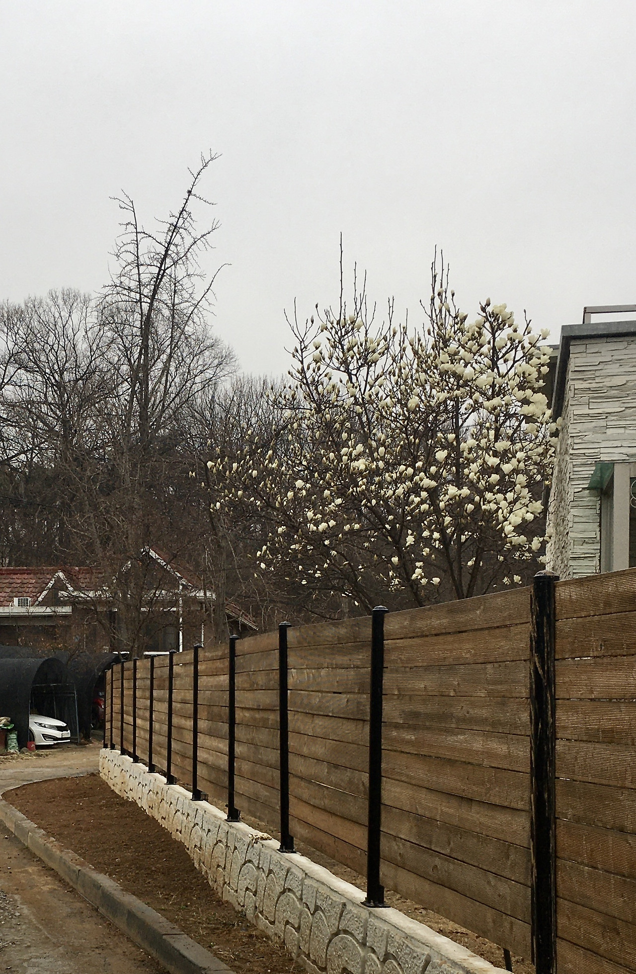 바로 옆집의 하얀 목련! 목련을 볼 때마다 고3때가 떠오른다. 3층이었던 교실 창문을 내다보면 목련나무가 아래 있었다. 때는 4월, 목련이 활짝 피었던 어느 날, 하얀 눈이 내린 적이 있다. (지금은 아니지만 그때 내 고향에선 4월 초까지 눈이 왔다) 그때 그 판타지 같은 풍경은 아직도 꿈인지 생신지 헛갈릴 정도로 몽환적이고 환상적이었다.
