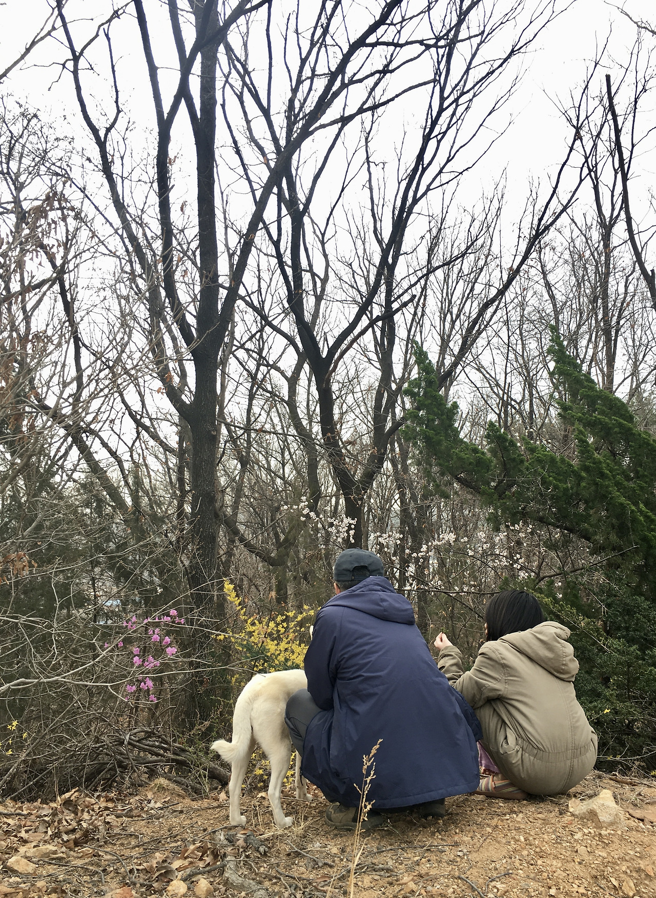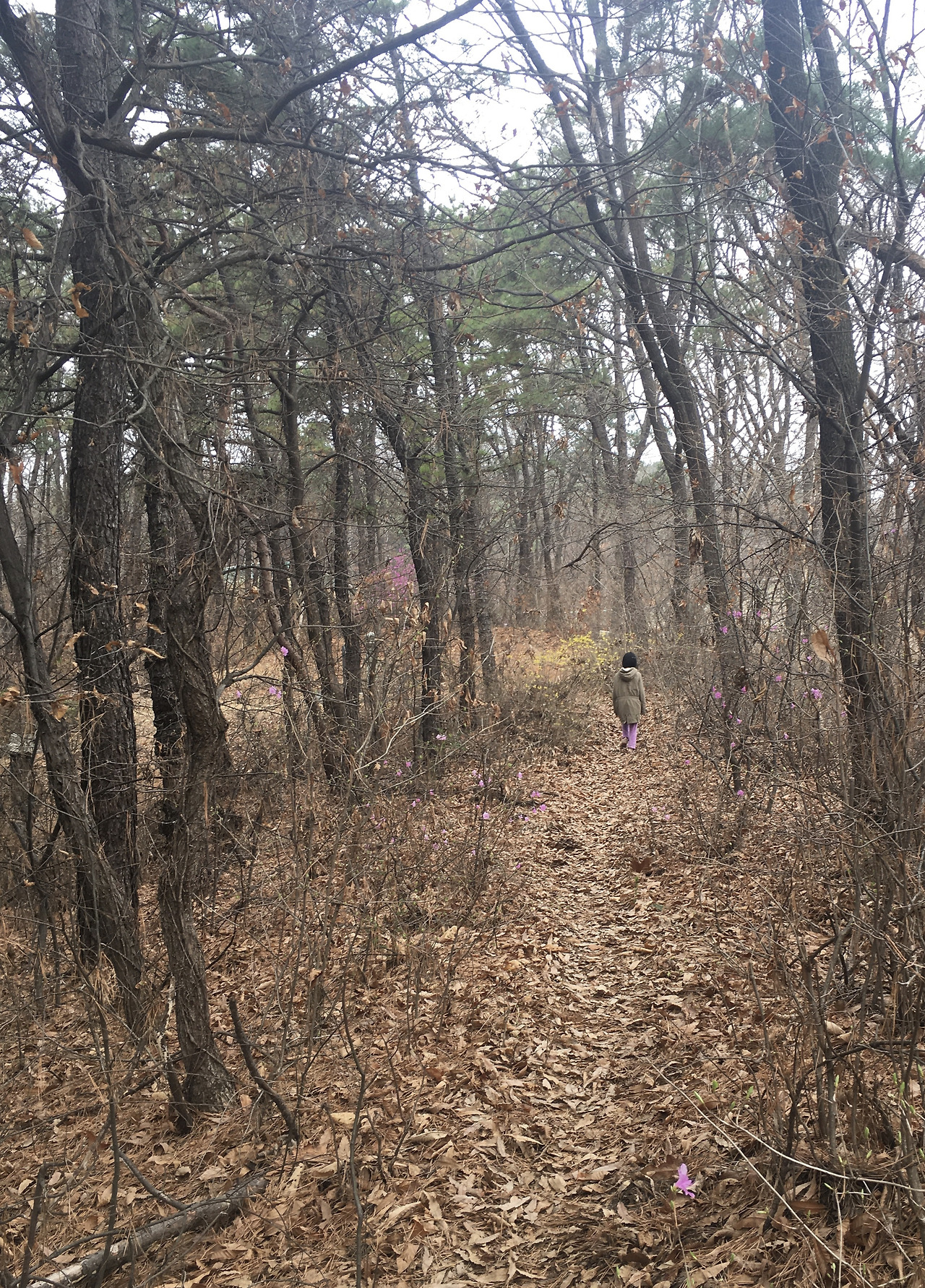 내가 진달래에 푹 빠져 있는 동안 딸과 남편이 사라졌다. 불러도 대답이 없다. 나만 두고 먼저 내려간 줄 알고 씩씩거리며 뛰어가는데 어디선가 소곤소곤 거리는 소리가 나를 멈춘다. 두 부녀가 언덕 위에 쪼그리고 앉아 있었다. ‘엄마, 여기 네 가지 색이 있어!’ 딸이 손을 내밀며 올라와 보라고 했다. 와! 여기 예쁘다!