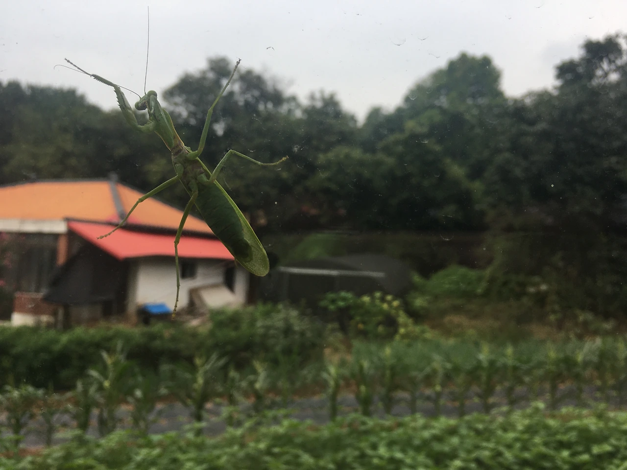 왜 거기서 그러고 있는 건데? 다행히 통창에 붙은 사마귀여서 집에 들어올 염려가 없기에 딸을 불러 녀석의 동태를 관찰하기로 했다.